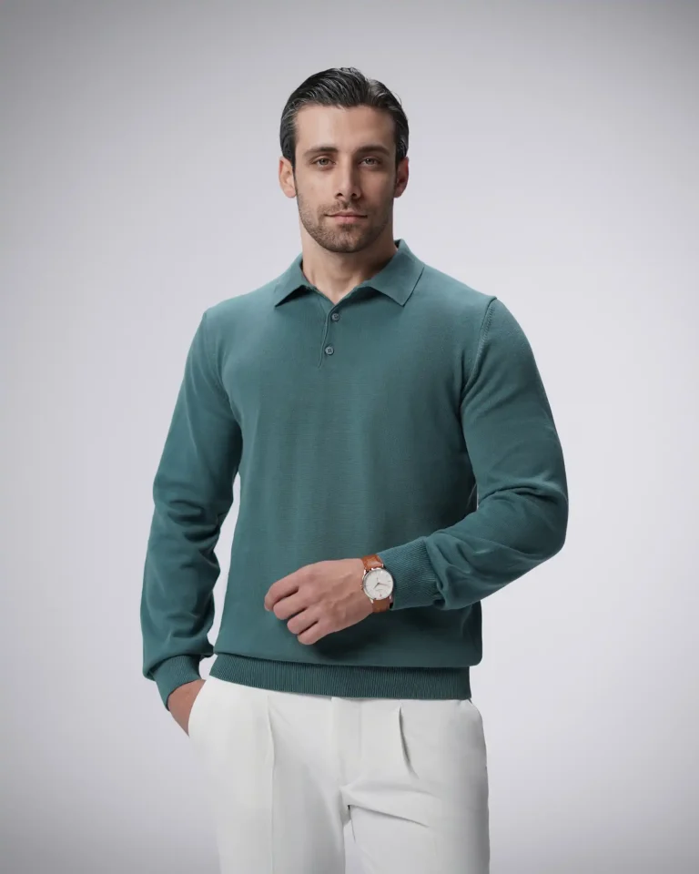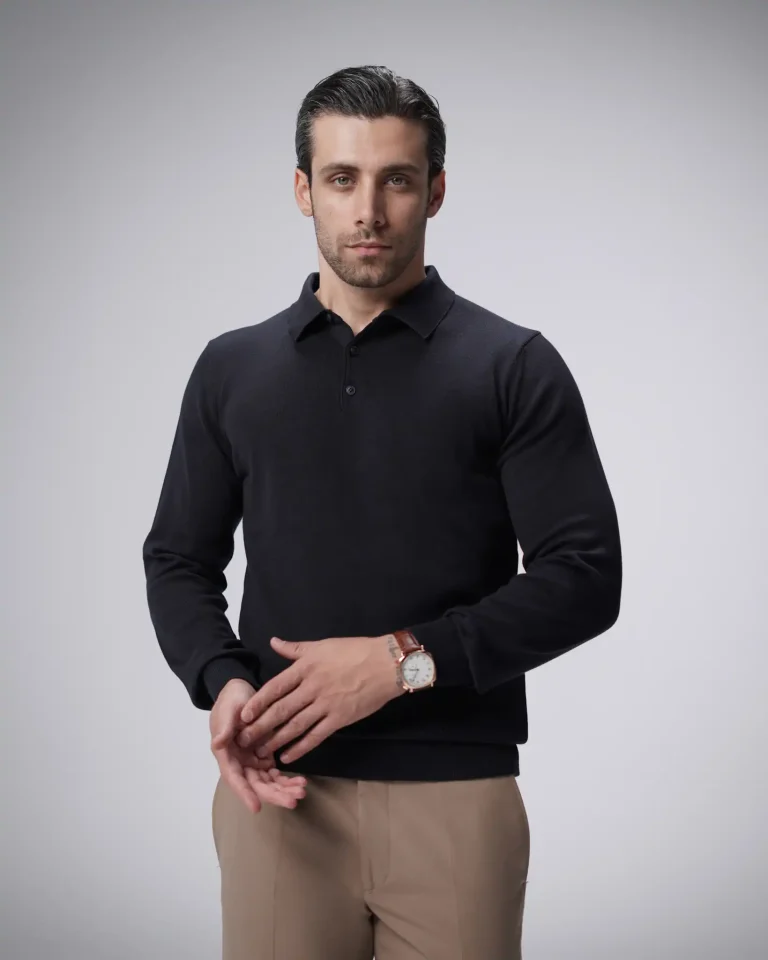 پلوشرت آستین بلند یقه برگرد مردانه کد 042