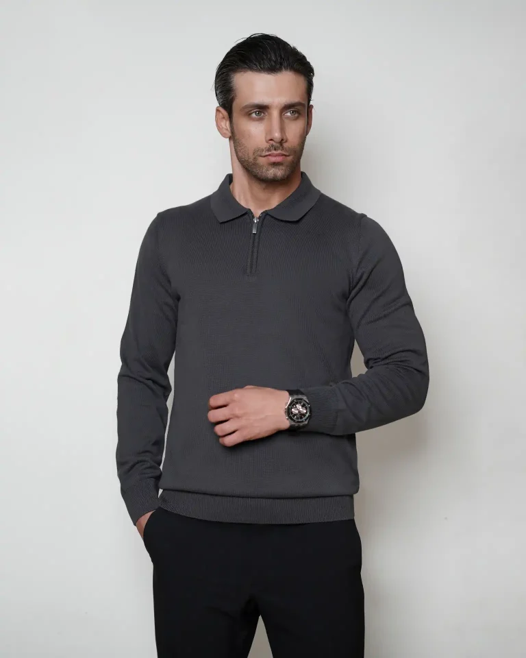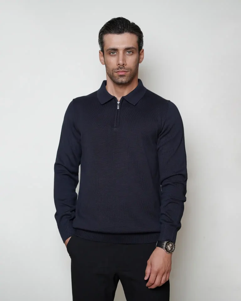 پلوشرت یقه برگرد نیم زیپ مردانه کد 041