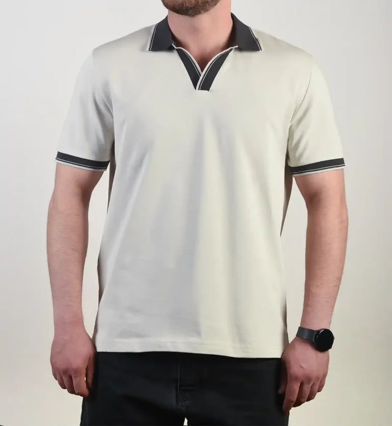 پلوشرت یقه برگرد لاسکنه دار مردانه کد 135