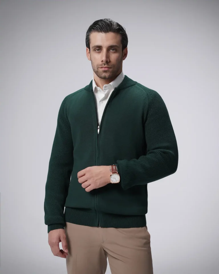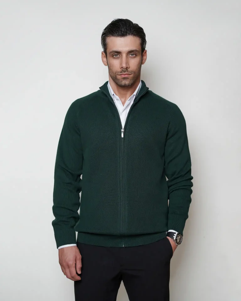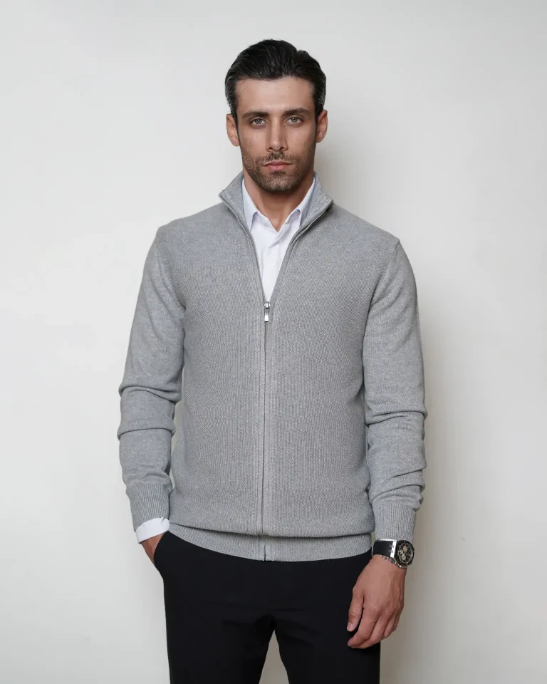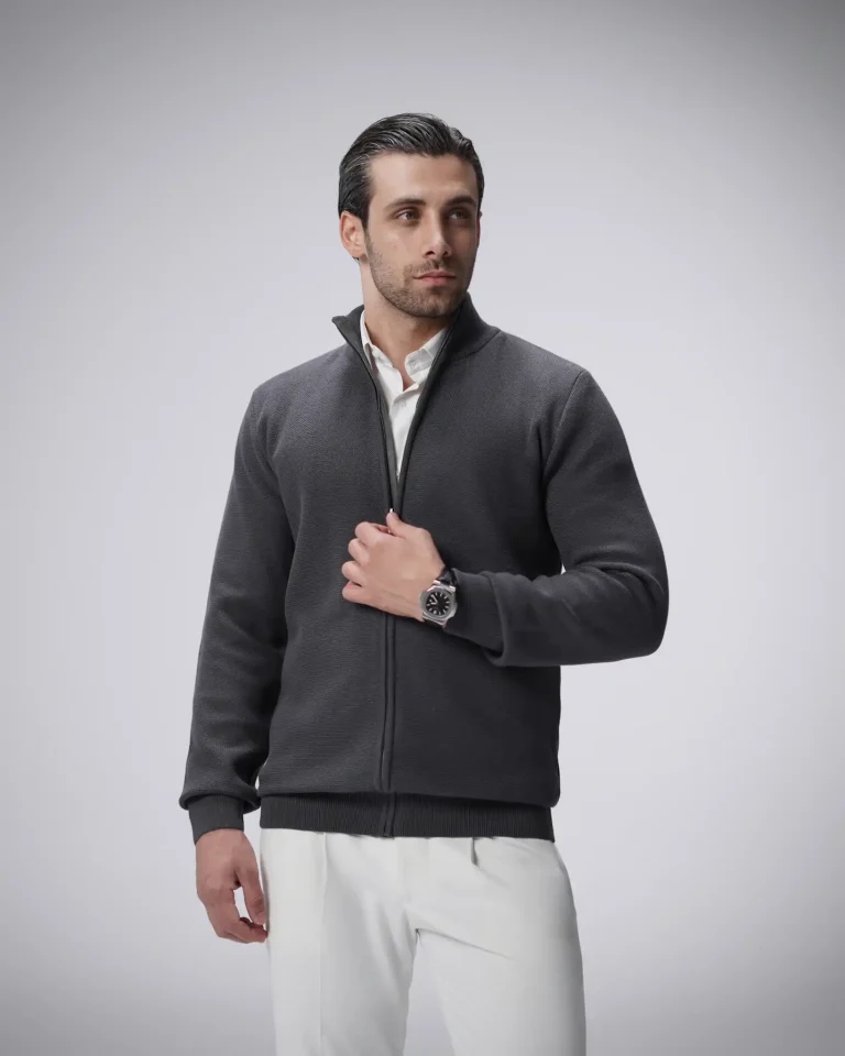 ژاکت بافت زیپی یقه ایستاده مردانه کد 031