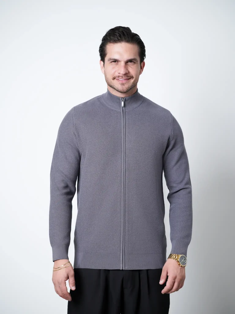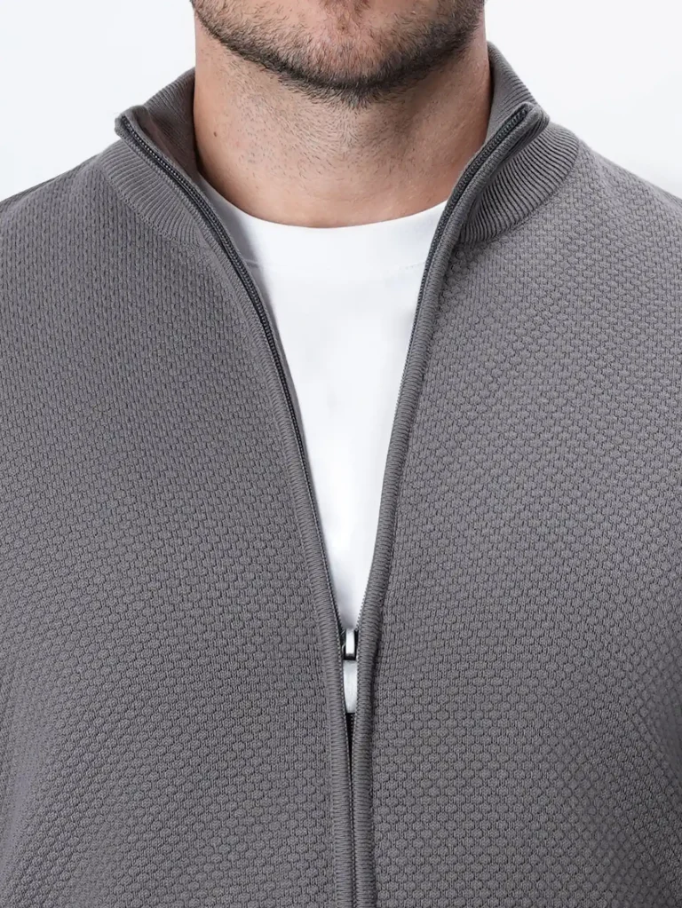 ژاکت بافت زیپی یقه ایستاده مردانه کد 424