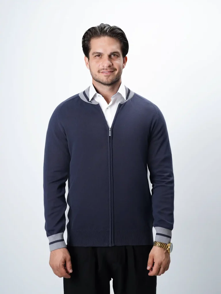 ژاکت بافت زیپی یقه ایستاده مردانه کد 030