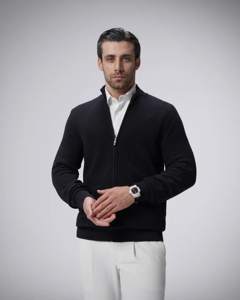 ژاکت بافت زیپی یقه ژاپنی مردانه کد 411