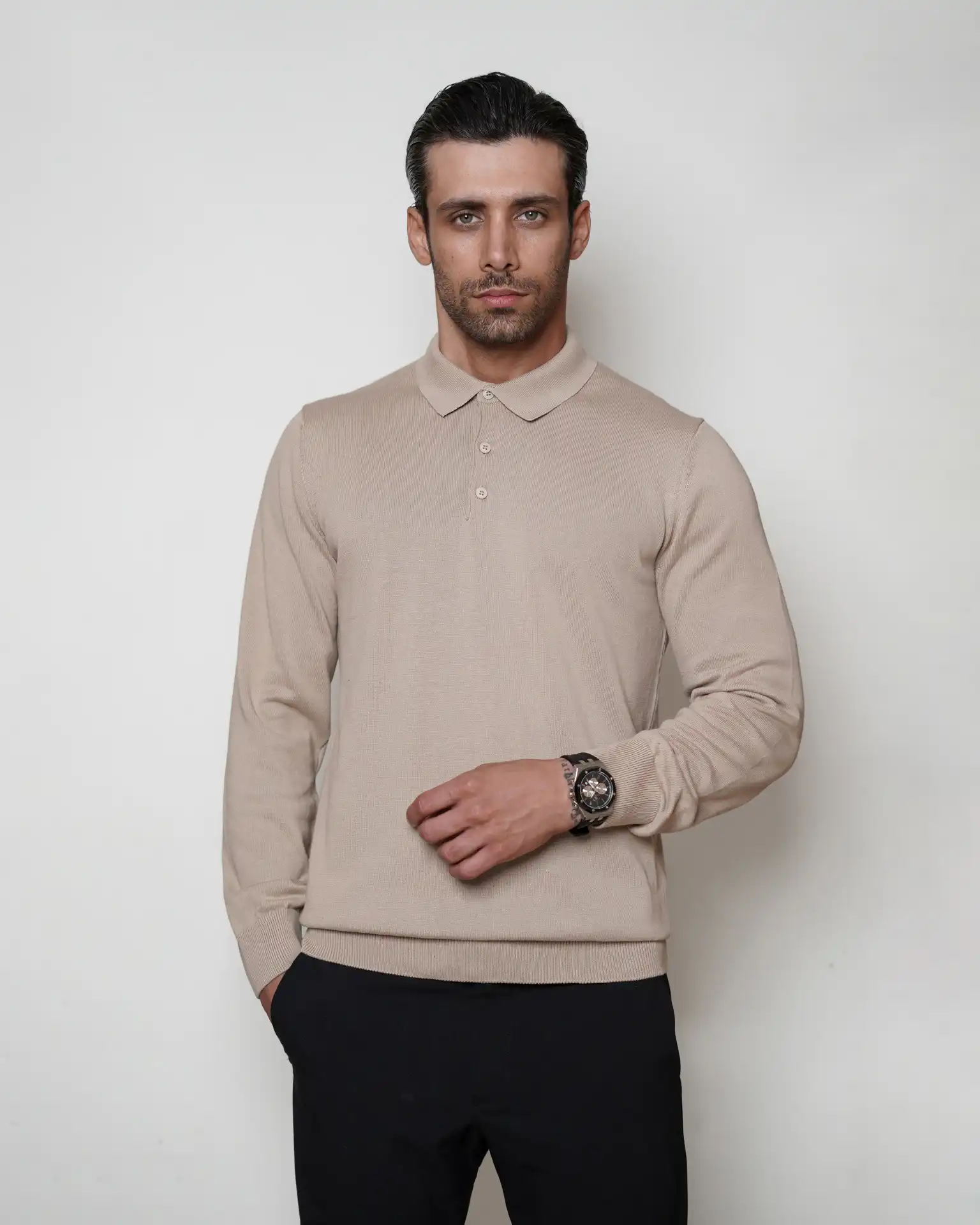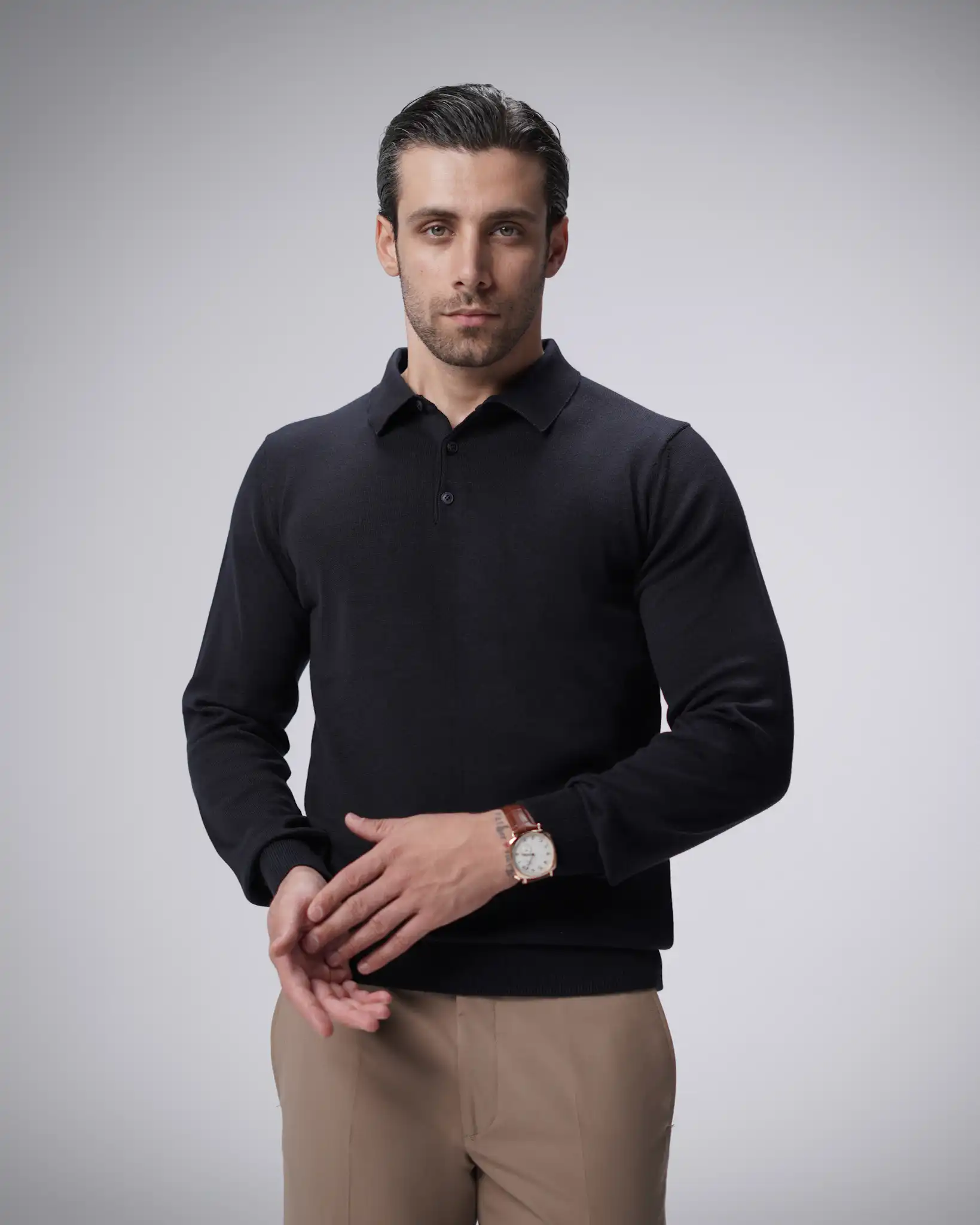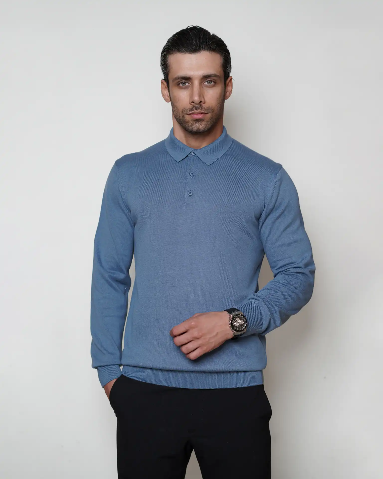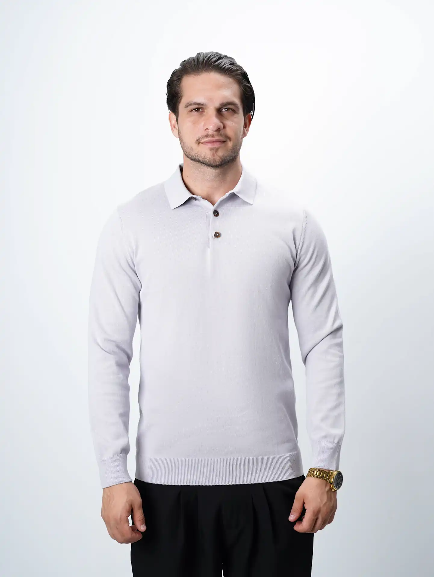 پلیور بافت سه دکمه یقه برگرد مردانه کد 001