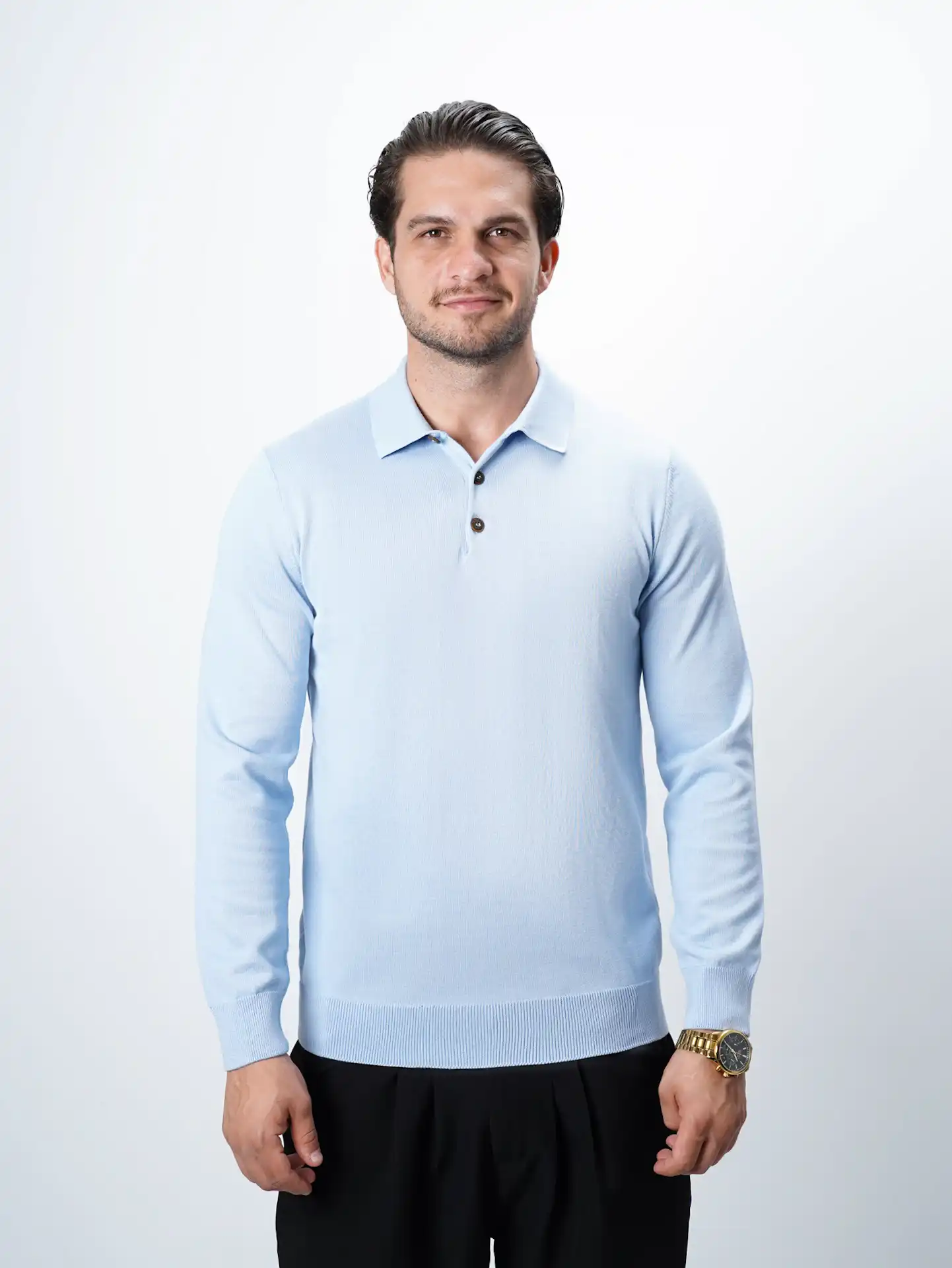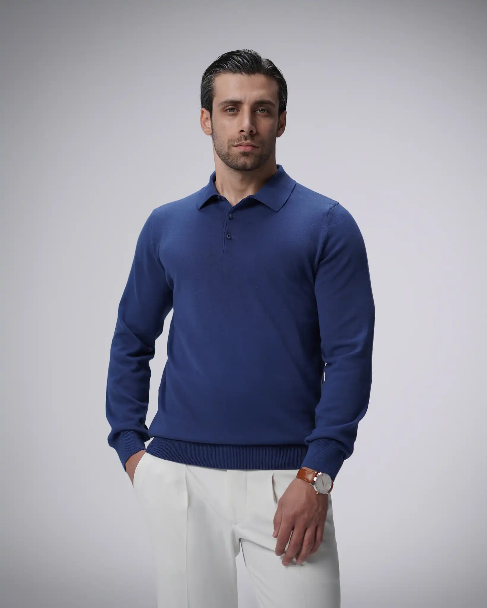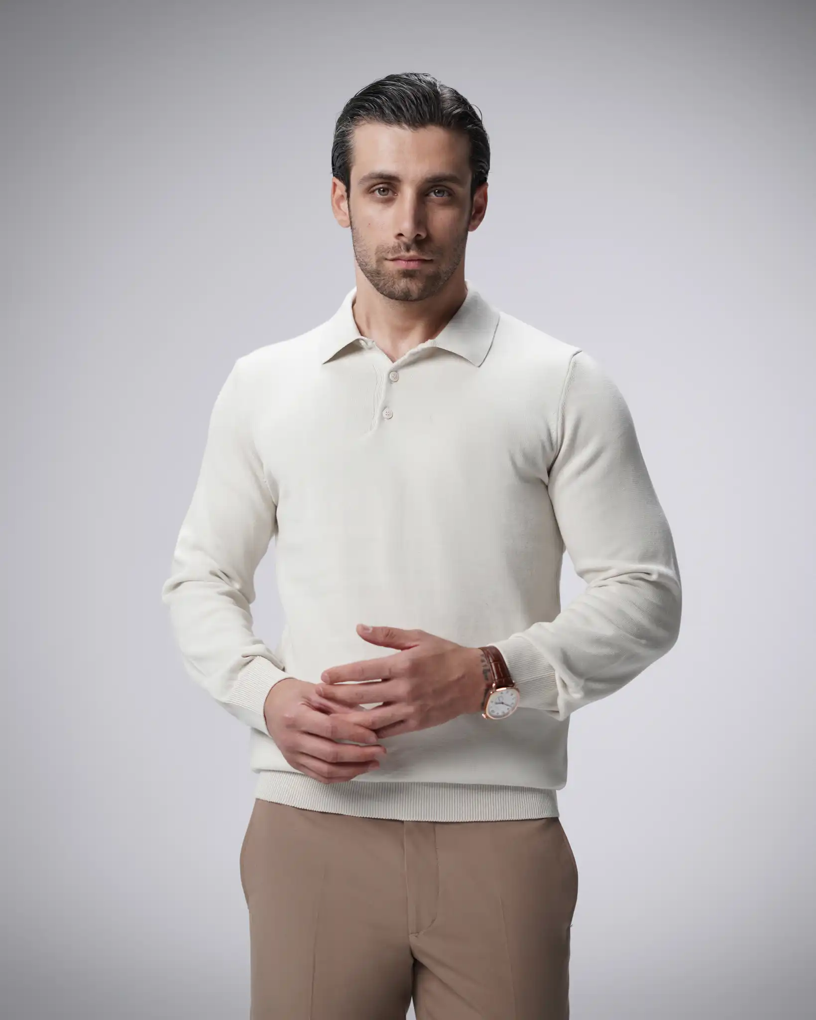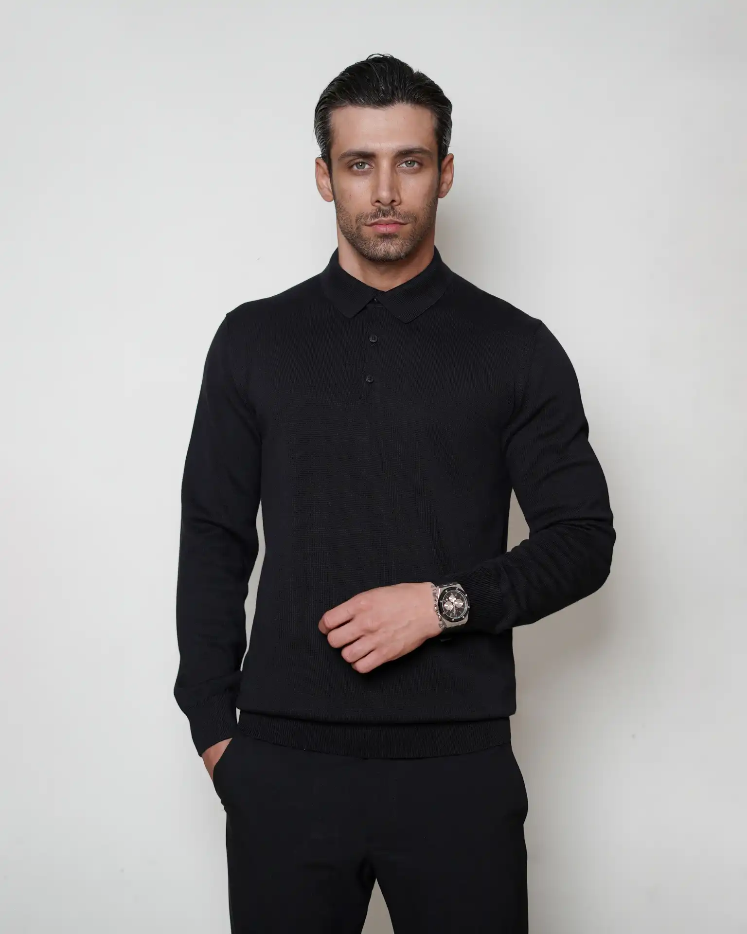 پلیور بافت سه دکمه یقه برگرد مردانه کد 001