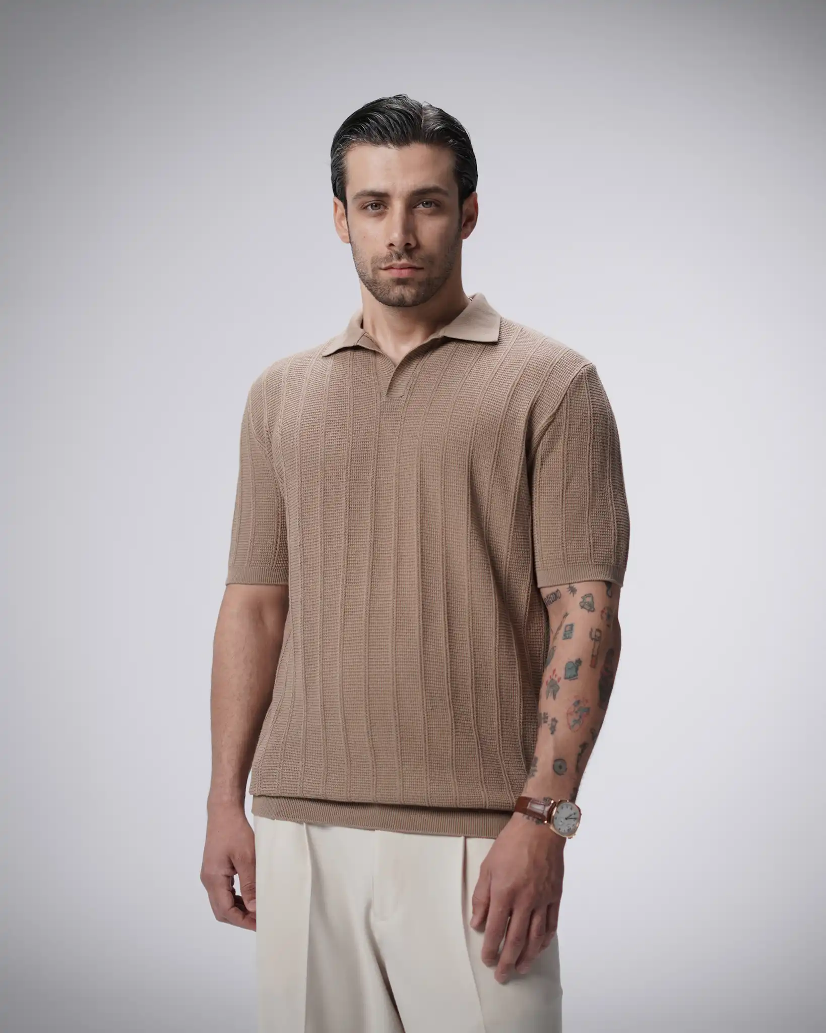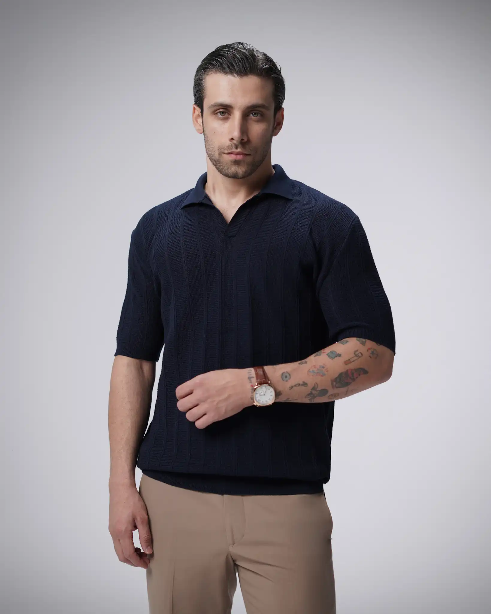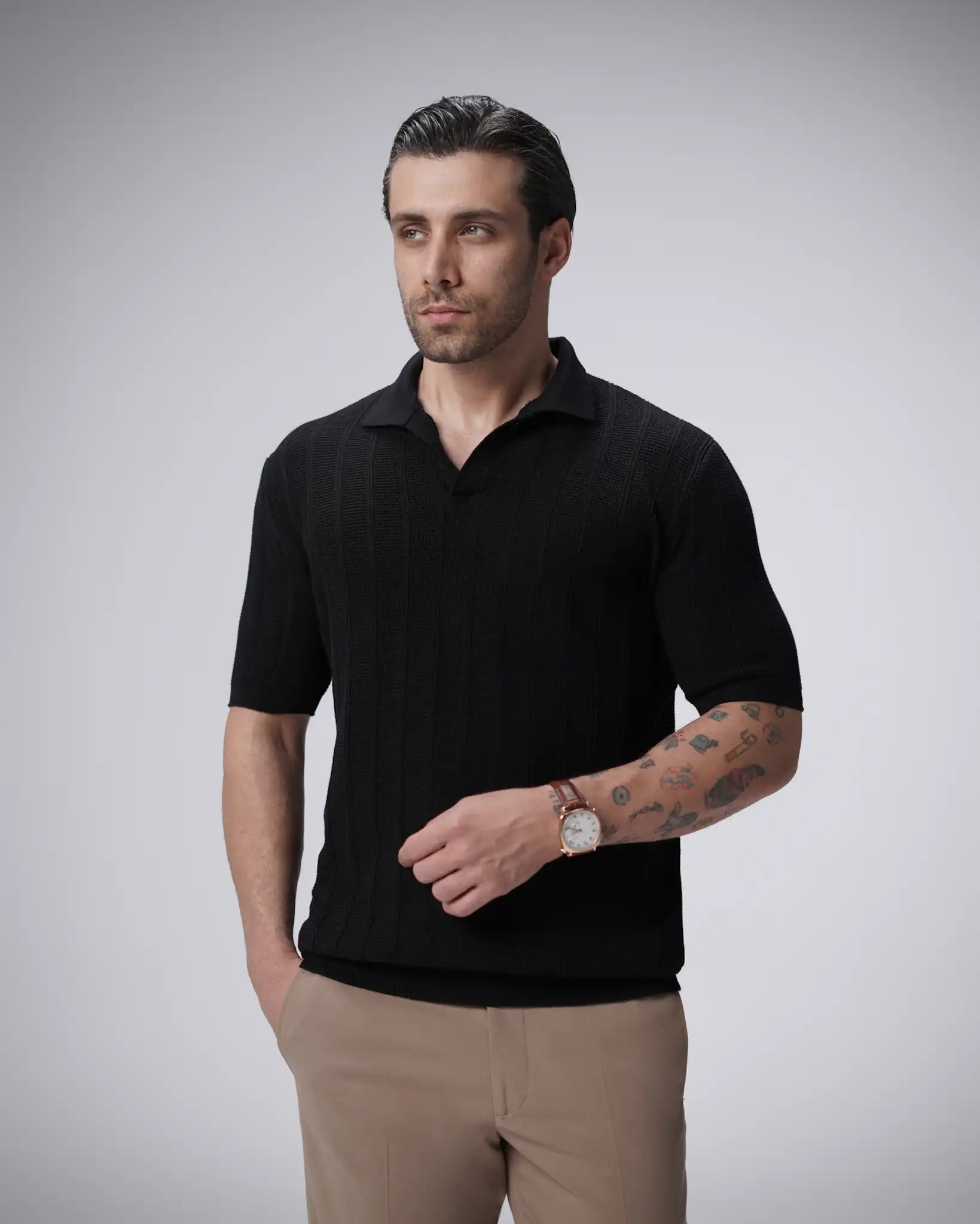 پولوشرت بافت یقه شکاری مردانه کد 446