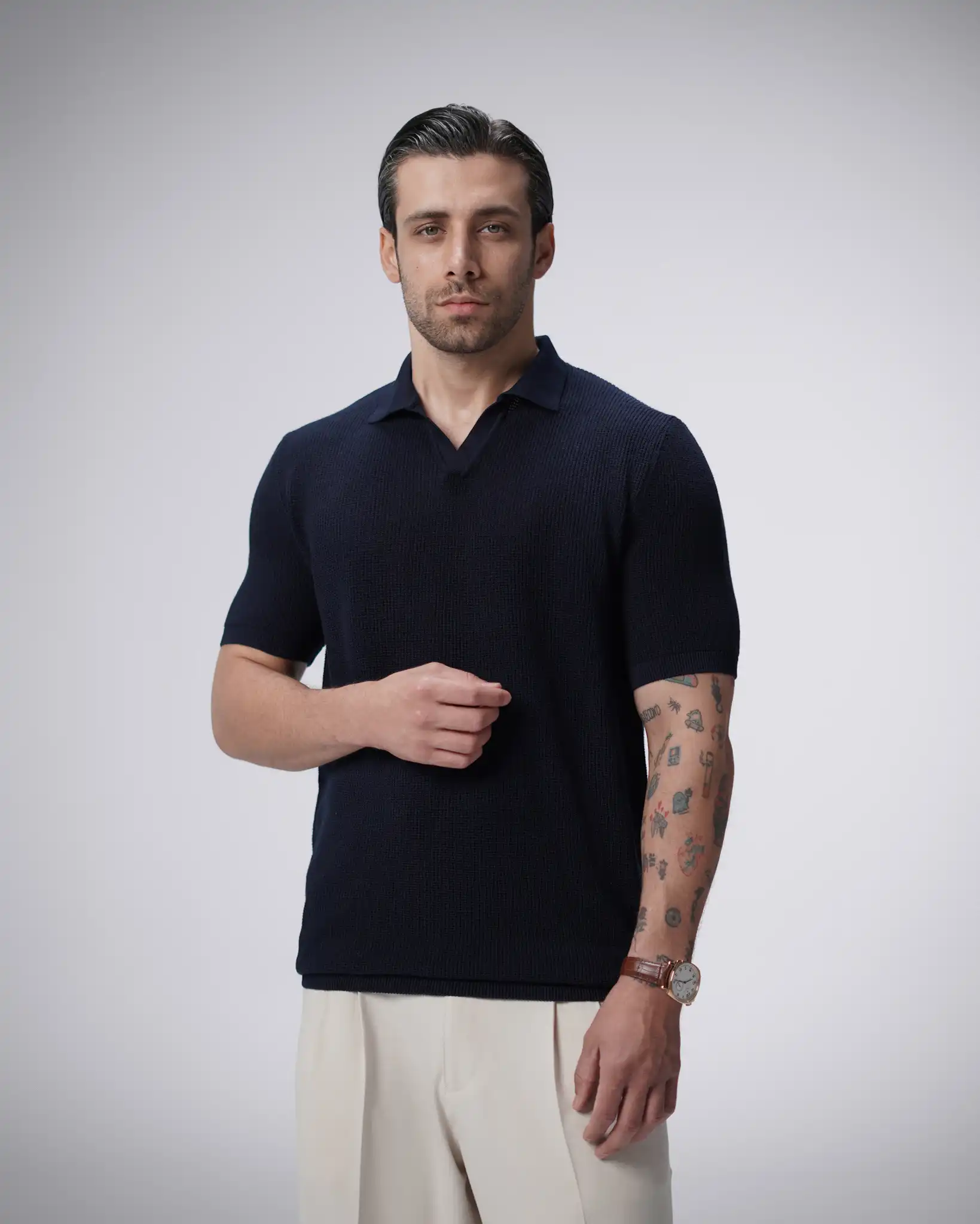 پولوشرت بافت یقه شکاری مردانه کد 449