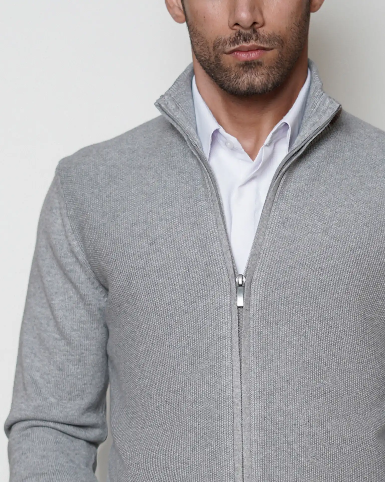 ژاکت بافت زیپی یقه ایستاده مردانه کد 383