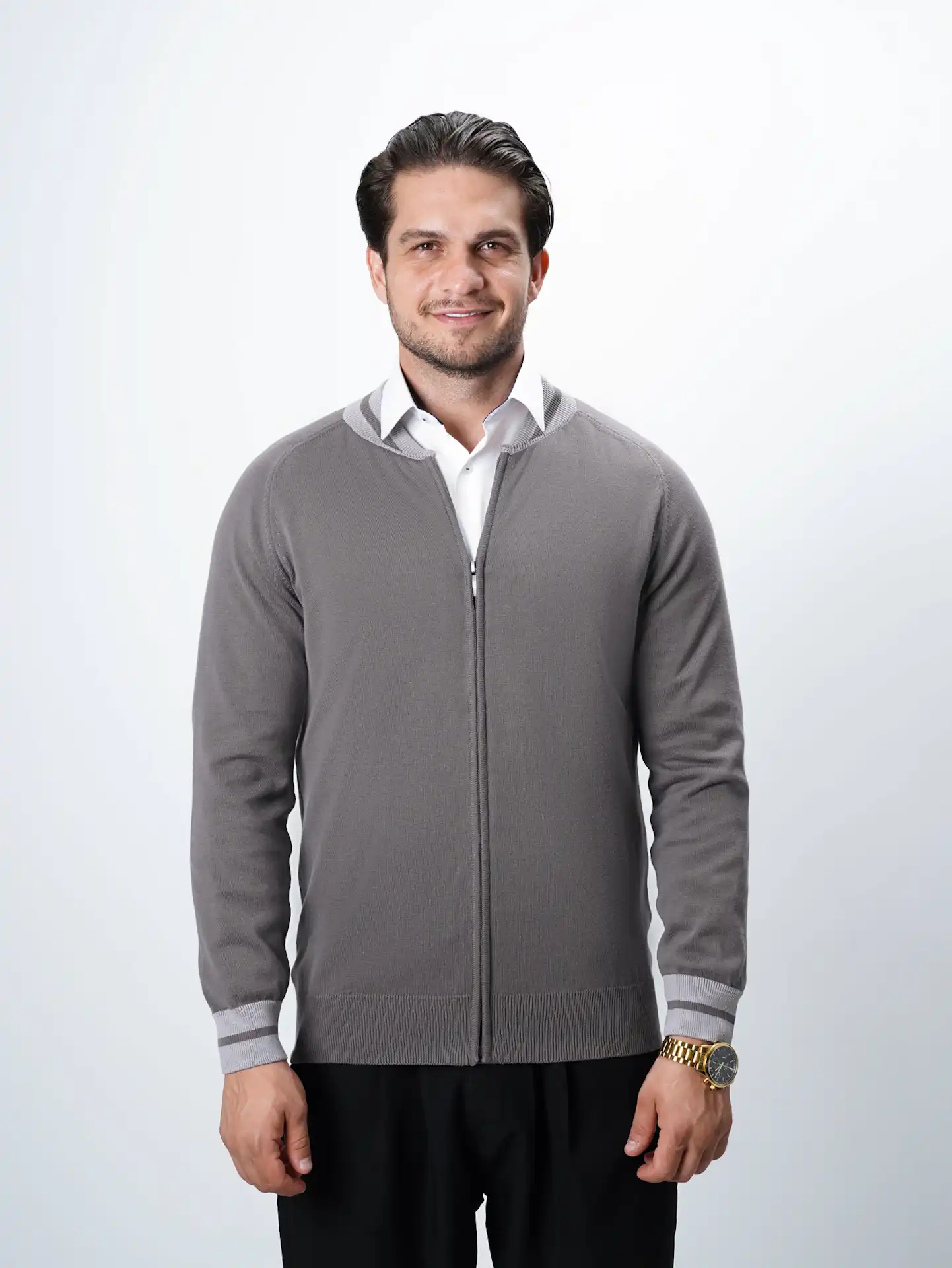 ژاکت بافت زیپی یقه ژاپنی مردانه کد 412